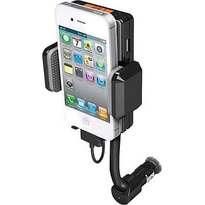 Car mount speaker system wirelessly transmits your device's audio signal over your vehicle's stereo and allows you to focus on driving Compatibility: Apple iPhone, iPhone 4, iPhone 3, iPhone 3s, iPhone 4s, iPod USB output: 5 V, 1 A max